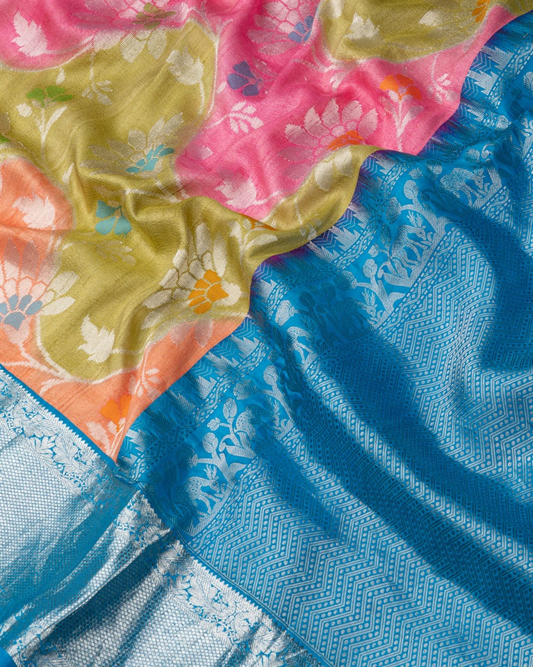 Mandir Multi-Colour & Blue Banarasi All Over Saree