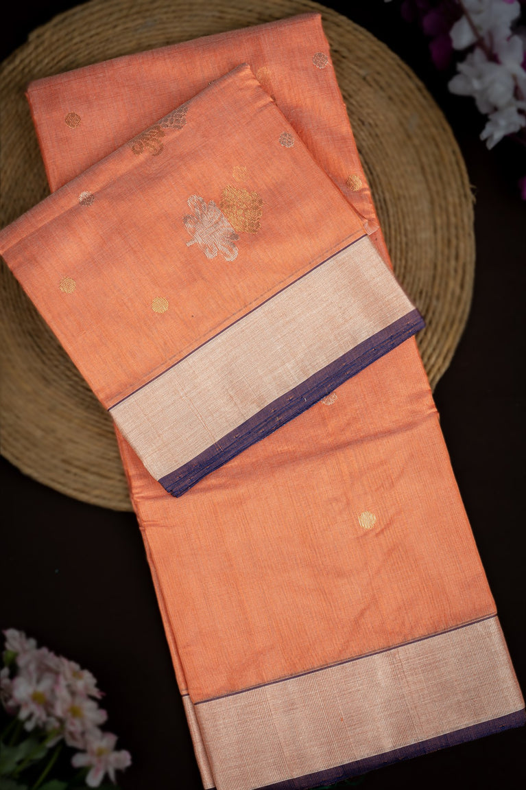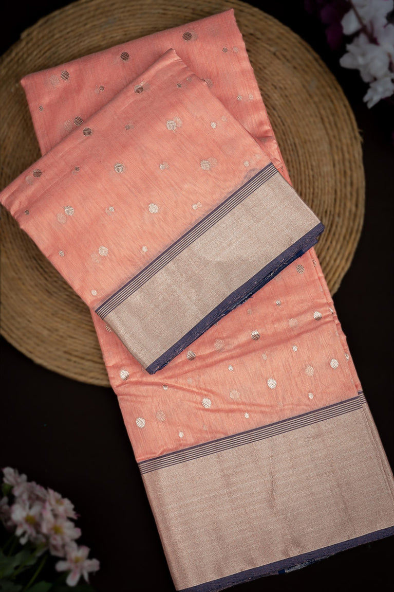 Mandir Peach Pink & Navy Blue Chanderi Buttis Saree