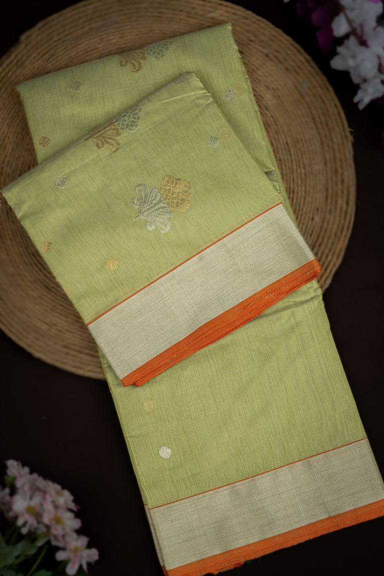 Mandir Pista Green & Orange Chanderi Motifs Saree