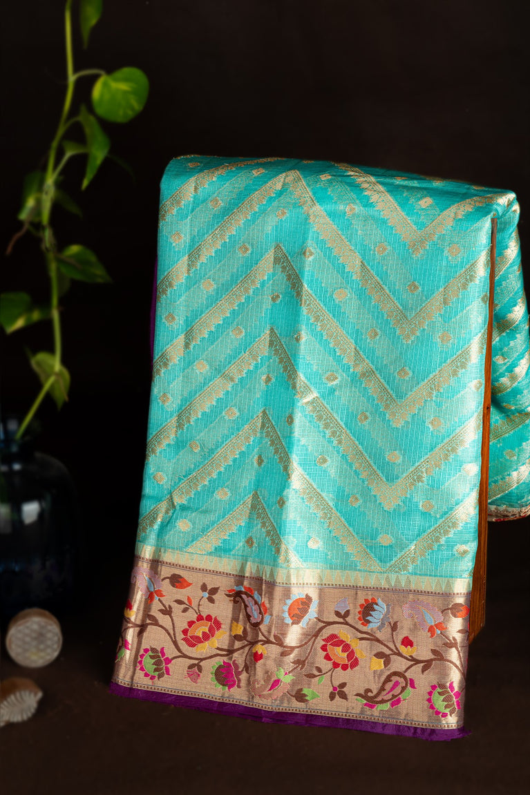 Mandir Sea Green & Royal Blue Kanchi Ikat Ikat Saree