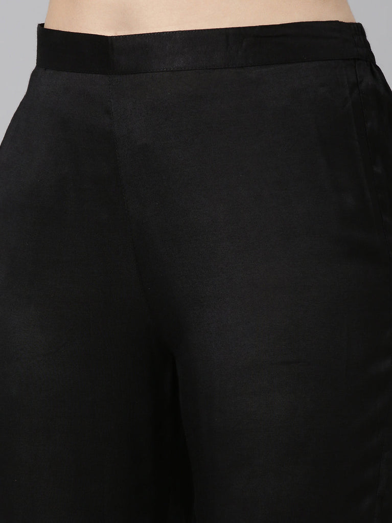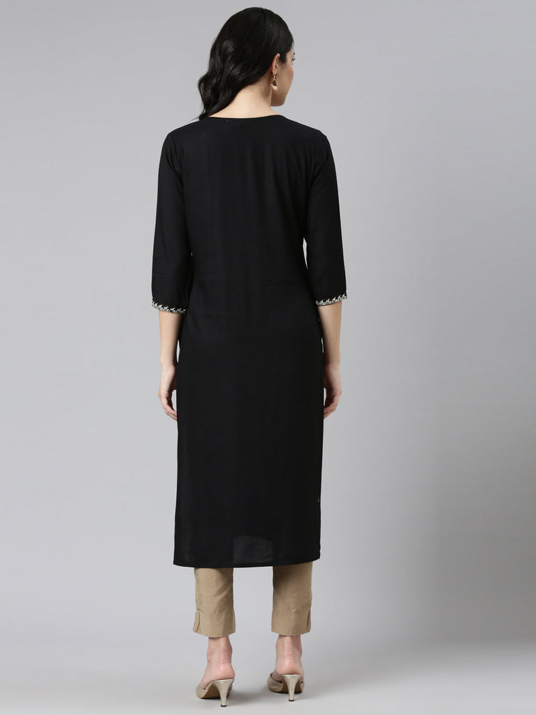 Neeru's Black Regular Straight Solid Kurtas