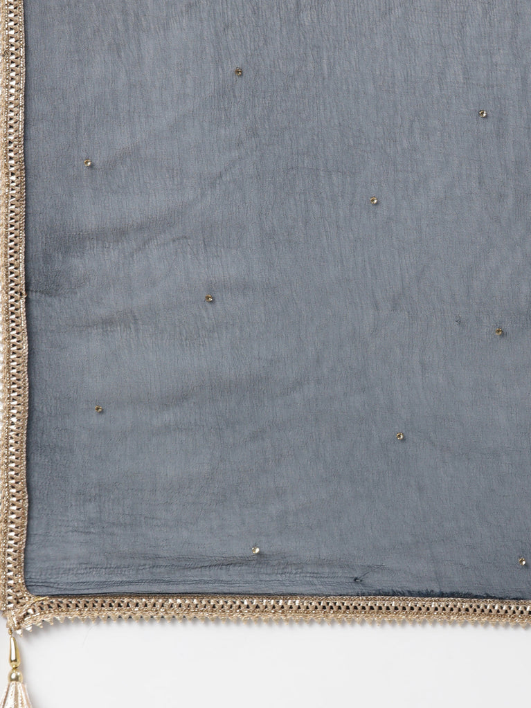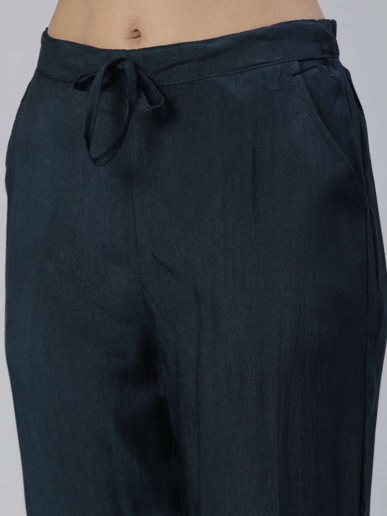 Crafted With A Captivating Blend Of Exceptional Prints And Lush Fabric, Neeru's Blue Regular Knee Length Readymade Suits Is An Embodiment Of Luxurious Sensibility And Sophistication. Along With A Solid-Hued Trousers, This Ensemble Is Complete With A Delicate Dupatta For A Stunning Appeal.