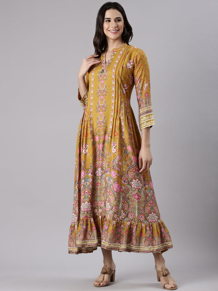 Neeru's Beige Straight Casual Printed Maxi Dresses Looking For A Breezy, Fashionable Look? Neeru's Beige-Hued Dress Is The Perfect Choice, Exuding Effortless Style With Casual Prints And A Straight Maxi Silhouette. It'S Like Summertime All Year Round.