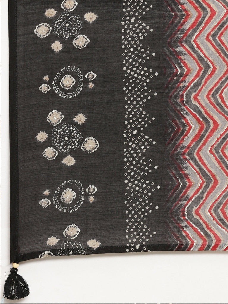 Neeru's Black Regular Straight Printed Readymade Suit An Ensemble Fit For A Queen Look Divinely Chic In This Colorblock Combo, Complete With Chic Trousers And A Dupatta For An Extra Dose Of Sophistication.