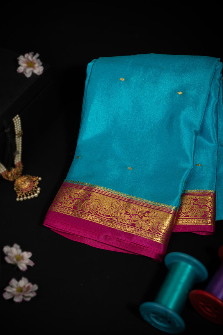 Varamahalakshmi Blue & Magenta Mysore Buttis Saree