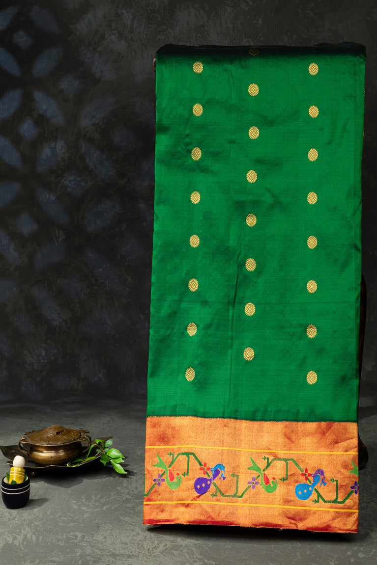 Varamahalakshmi Bottle Green & Red Gadwal Floral Buttis Saree