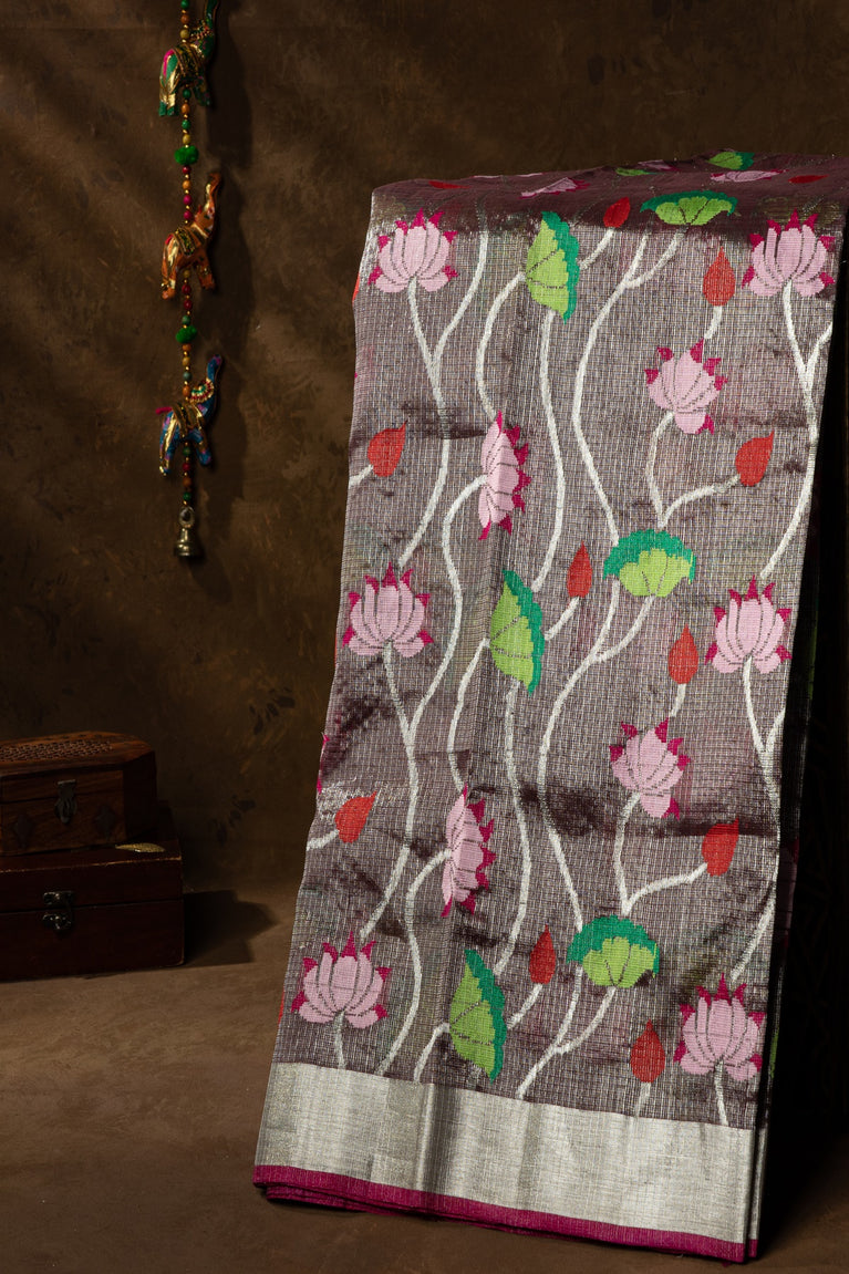 Varamahalakshmi Copper & Grey Venkatagiri Jaal Saree