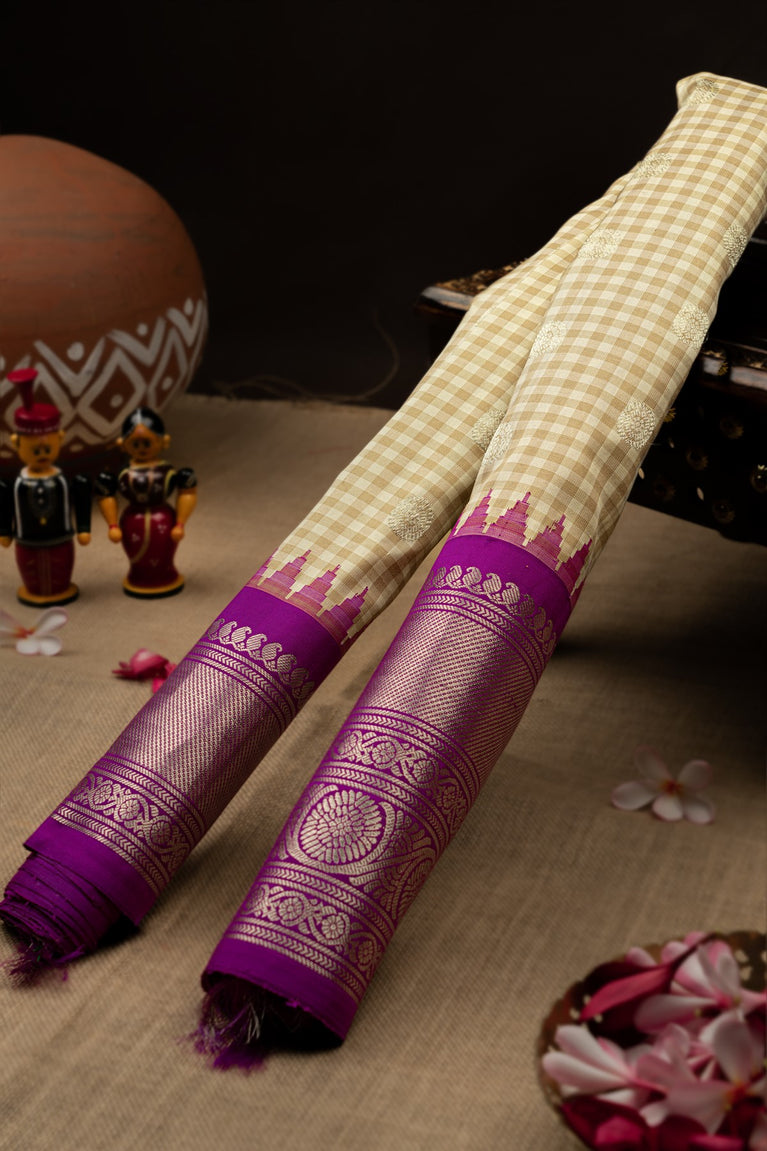 Varamahalakshmi Cream & Beige Gadwal Checks And Buttis Saree