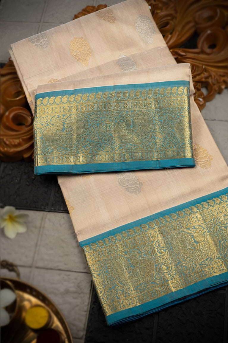 Varamahalakshmi Cream & Blue Kanchipuram Plain Saree