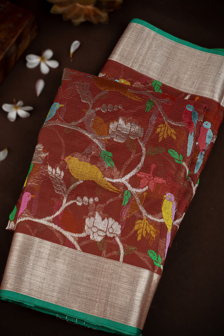 Varamahalakshmi Brown & Multi-Colour Zari Kota Jaal Saree