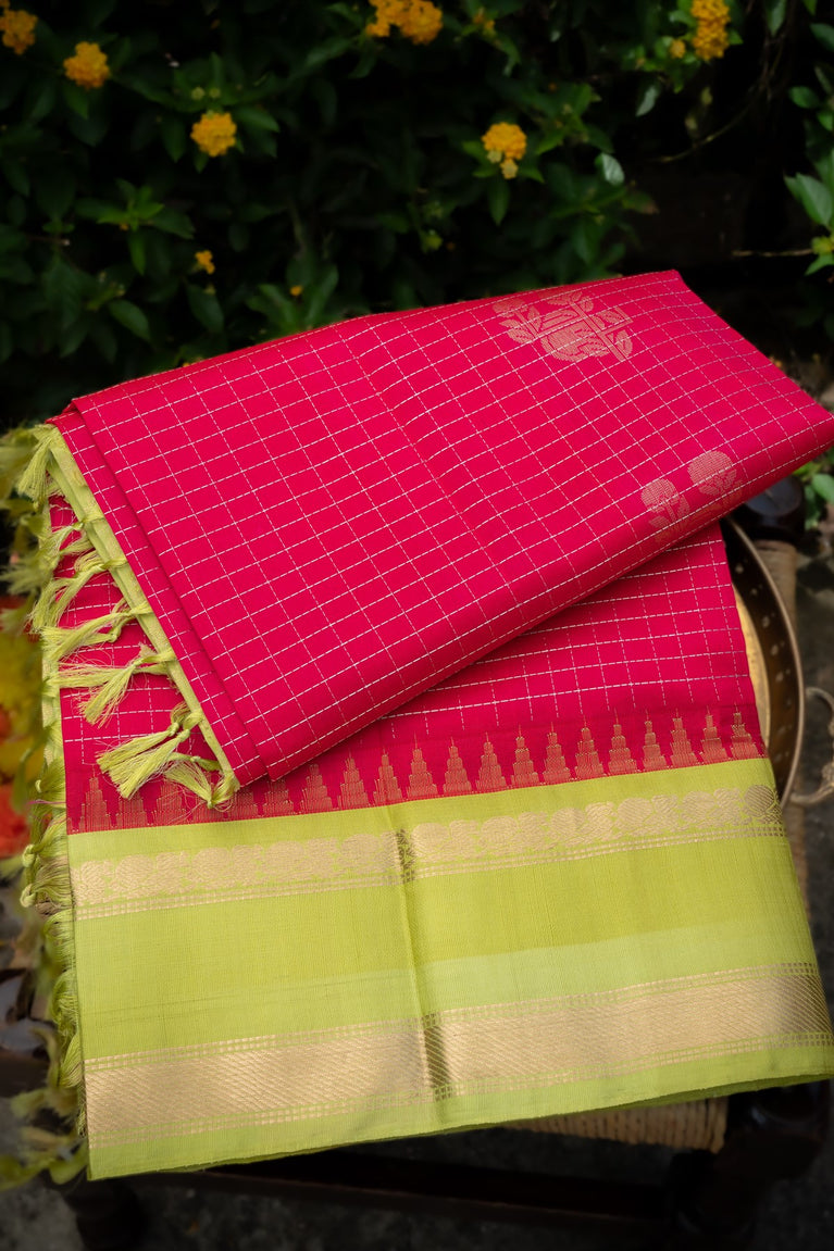 Varamahalakshmi Red & Red Kancheepuram Cross Checks Saree