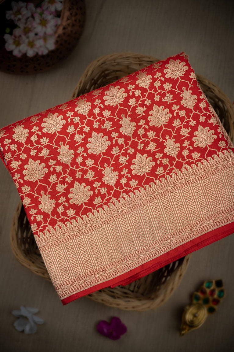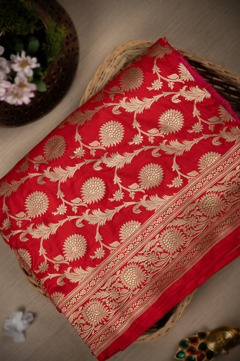 Varamahalakshmi Red & Red Banarasi Floral Jaal Saree