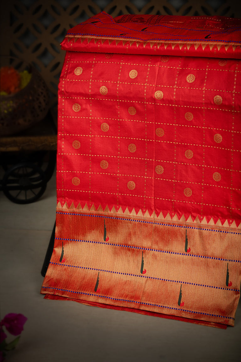 Varamahalakshmi Red & Gold and Red Paithani Checks And Buttis Saree