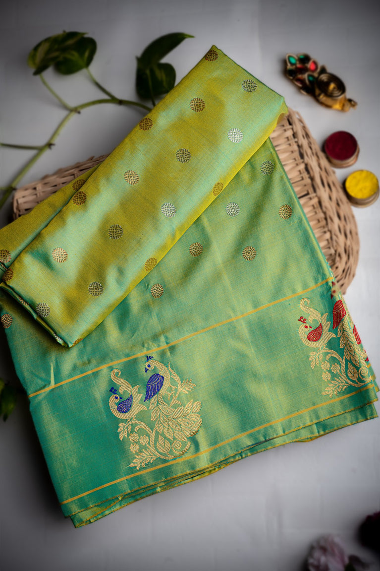 Varamahalakshmi Sea Green & Light Green Uppada Buttis Saree