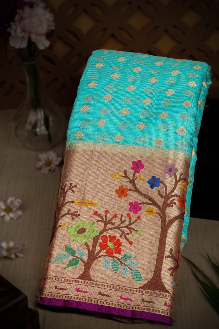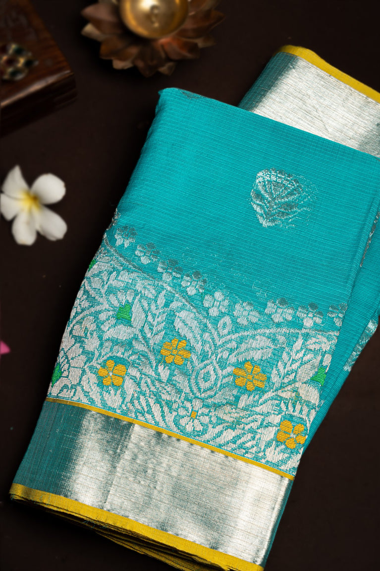 Varamahalakshmi Sea Blue & Mustard Zari Kota Buttis Saree