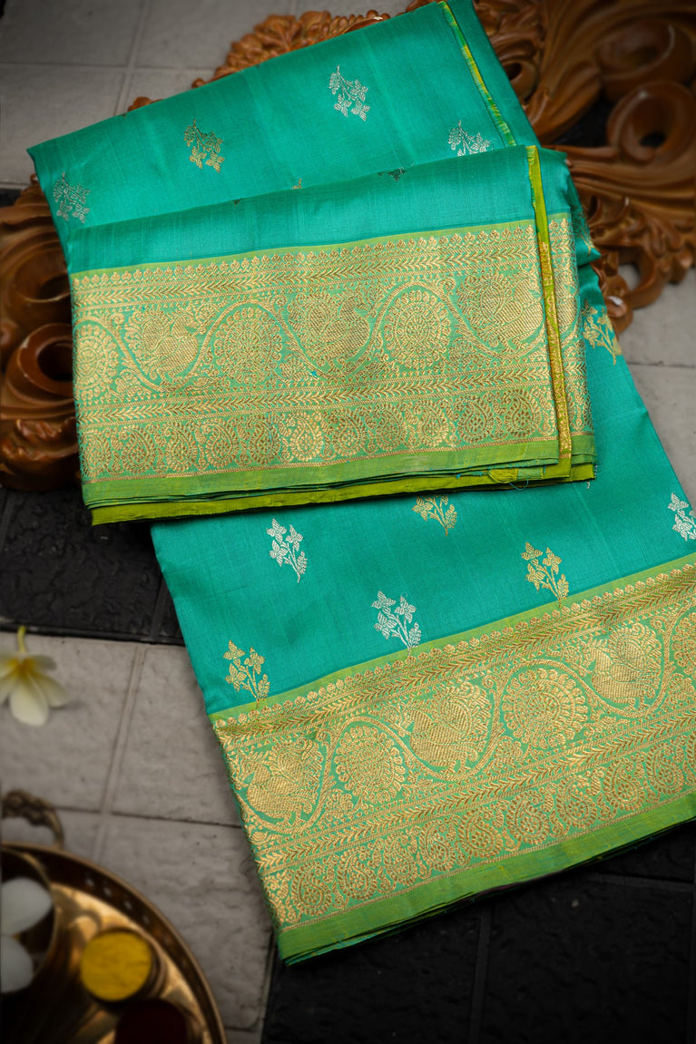Varamahalakshmi Sea Green & Gold Gadwal Buttis Saree