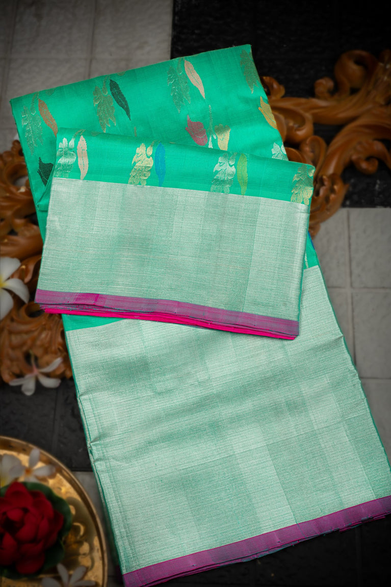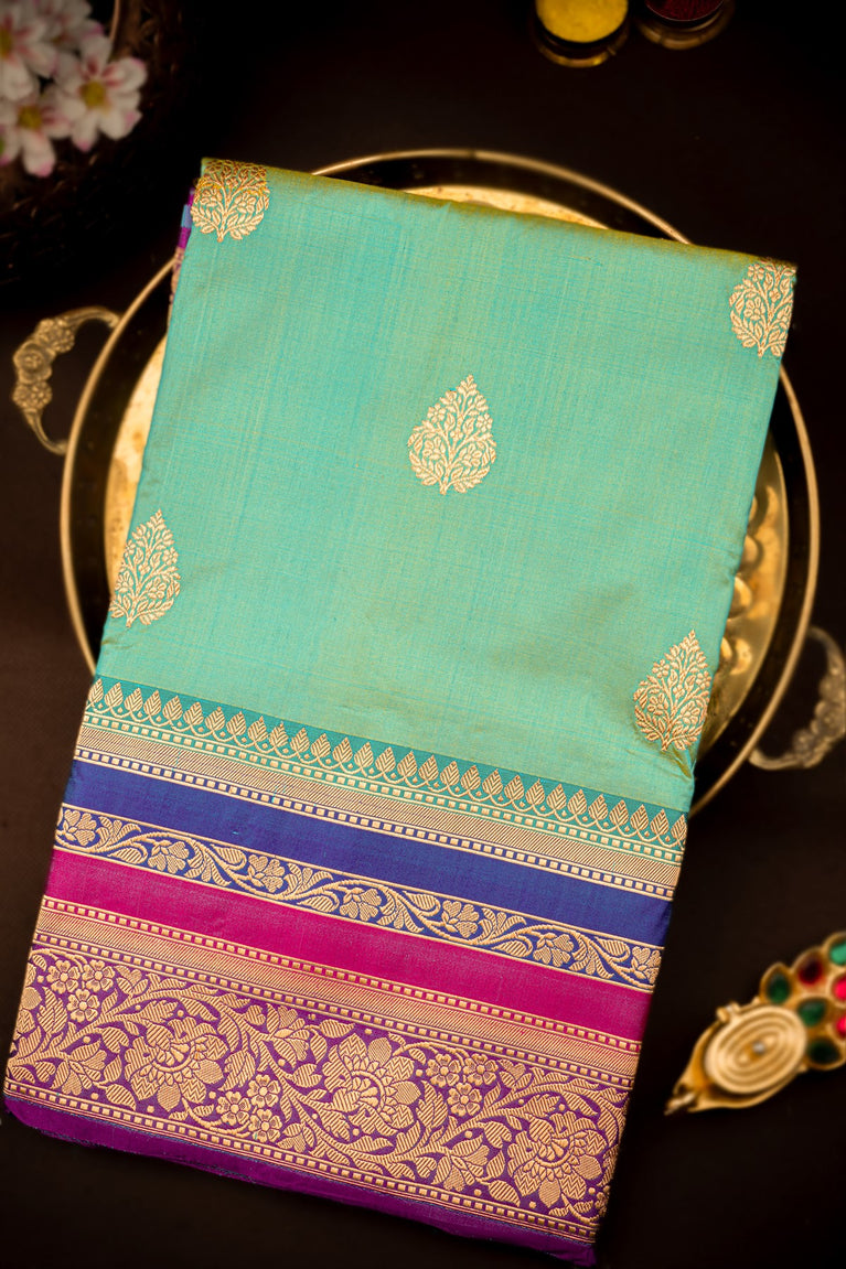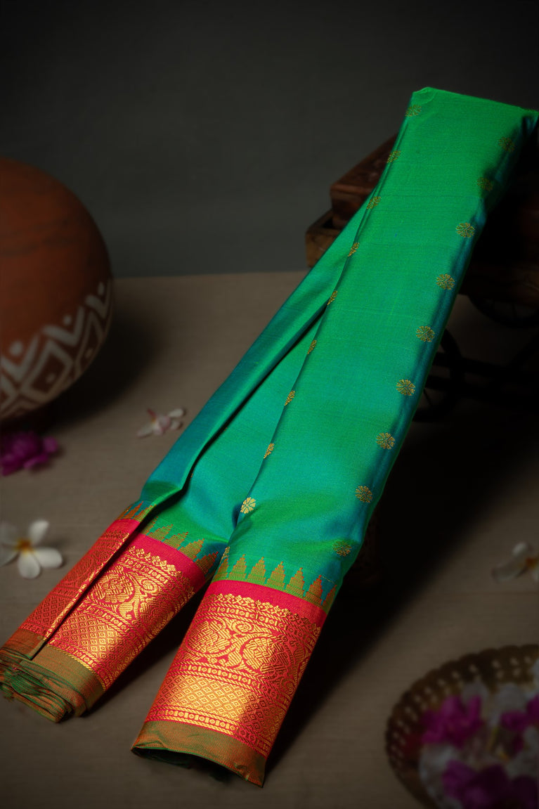 Varamahalakshmi Sea Green & Magenta Kanchipuram Buttis Saree