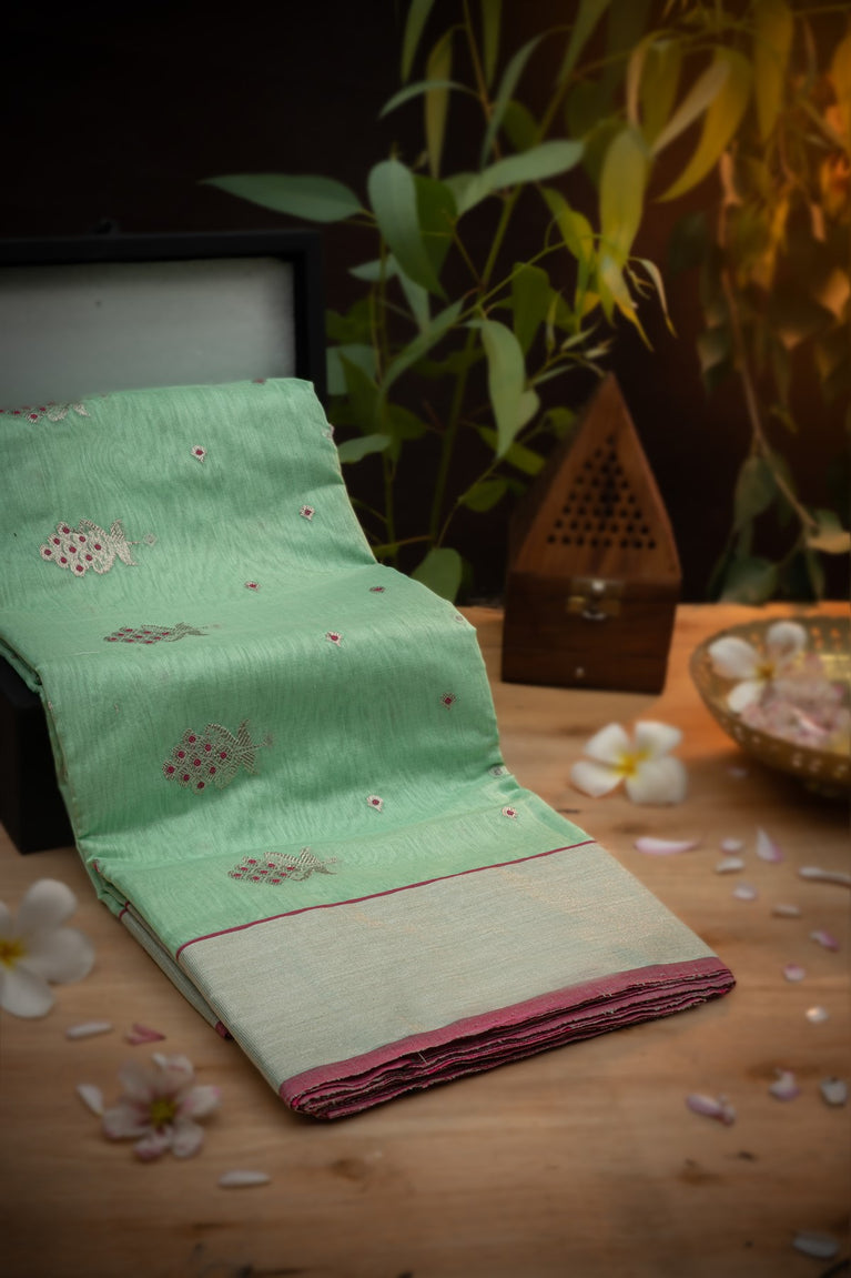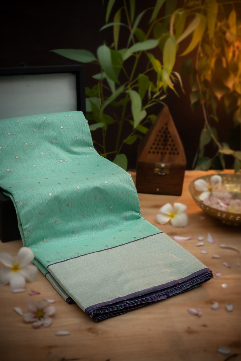 Varamahalakshmi Sea Green & Purple Chanderi Buttis Saree
