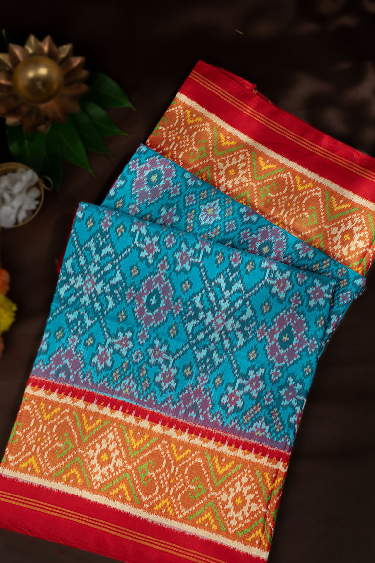 Varamahalakshmi Sea Blue & Red Patola Ikat Saree