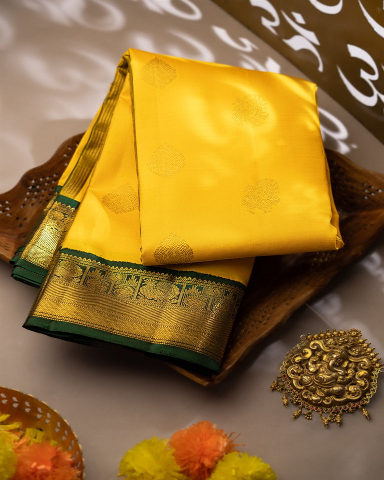 Varamahalakshmi Yellow & Green Kanchipuram Buttis Saree