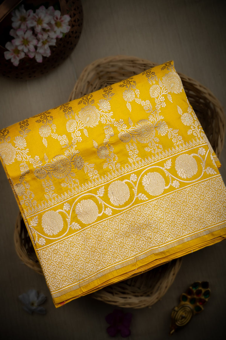 Varamahalakshmi Yellow & Yellow Banarasi Jaal Saree