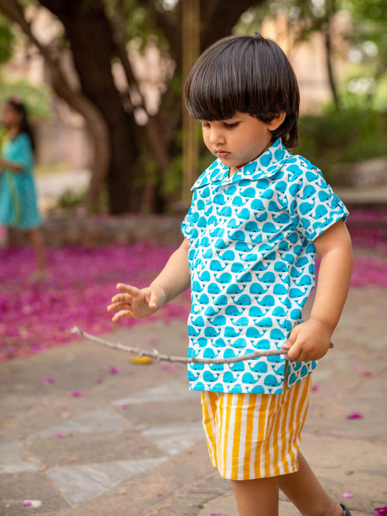 Ocean Breeze Organic Cotton Block Printed Angrakha Set