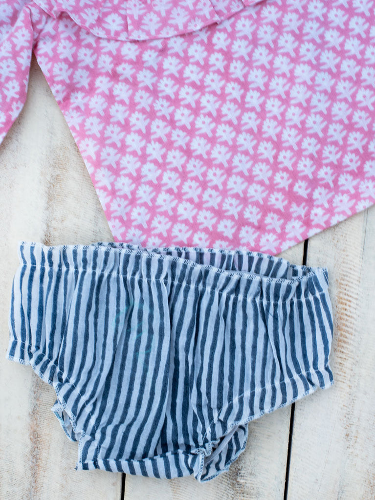 Pink Floral Block Printed Cotton Bloomer Set
