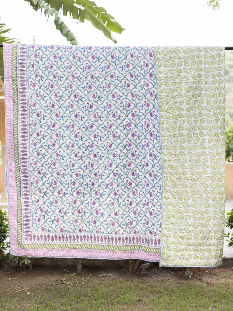 Purple Lotus Hand Block Printed Cotton Bed Sheet