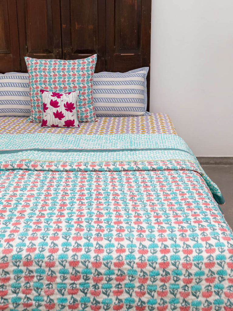 Seahorse Block Printed Cotton Top & Pyjama Set