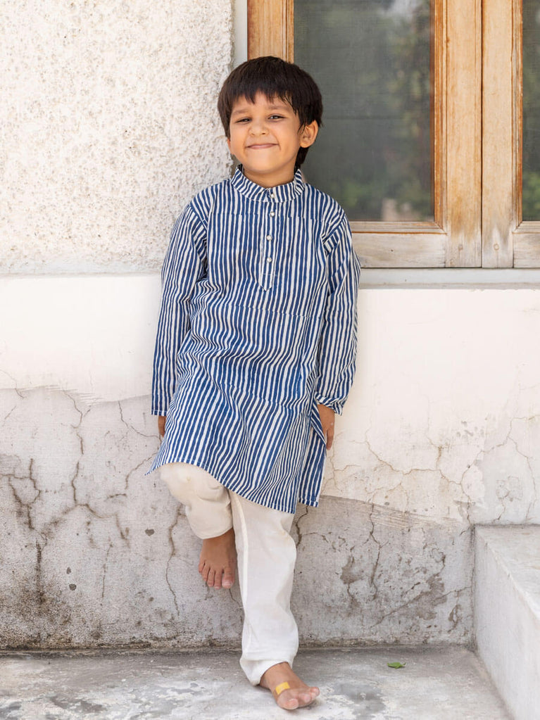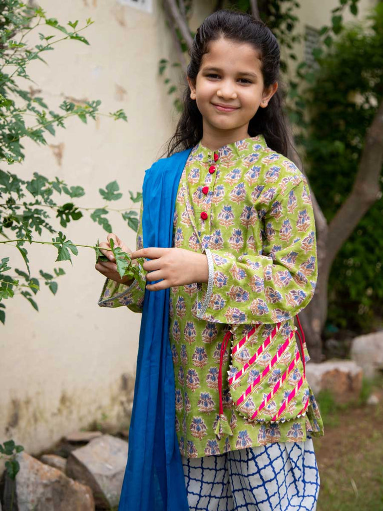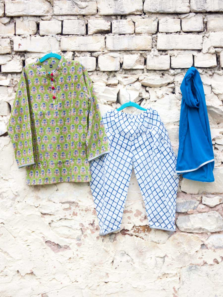 Set of 3 - Tarang Block Printed Kurta With Jacket