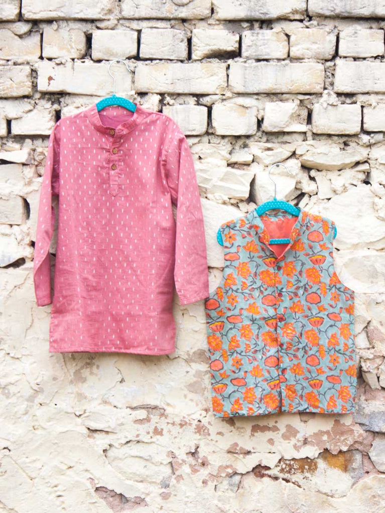 Set of 3 - Tirth Organic Cotton Long Kurta with Jacket