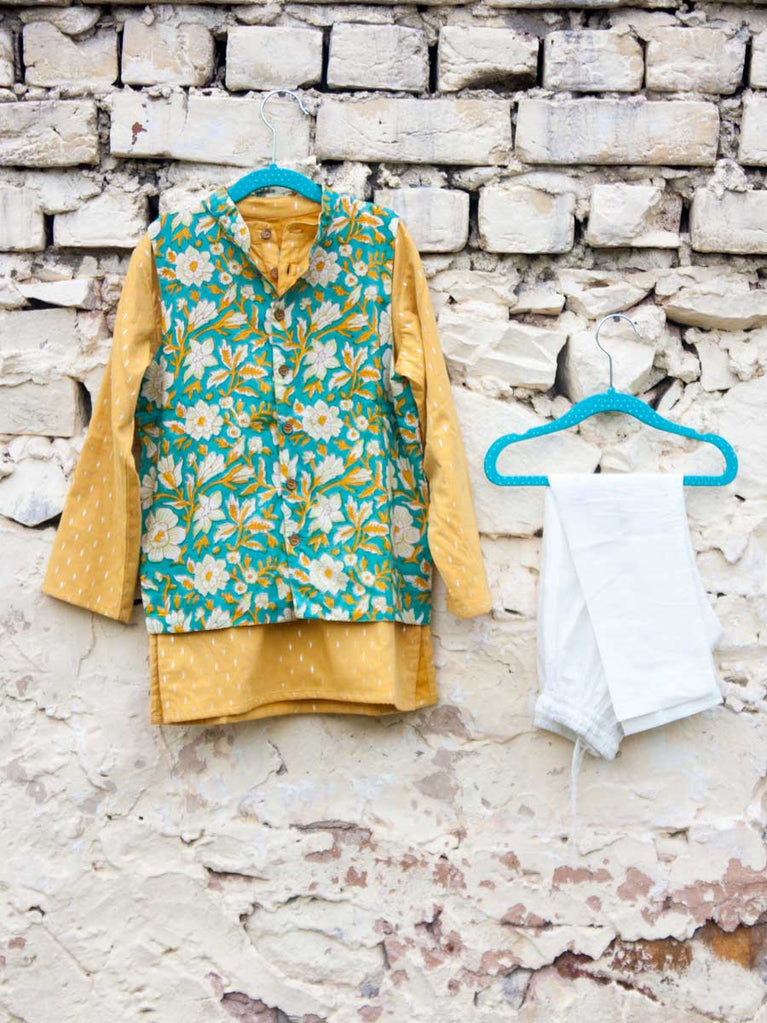 Set of 3 - Sunshine Love Block Printed Kurta With Jacket