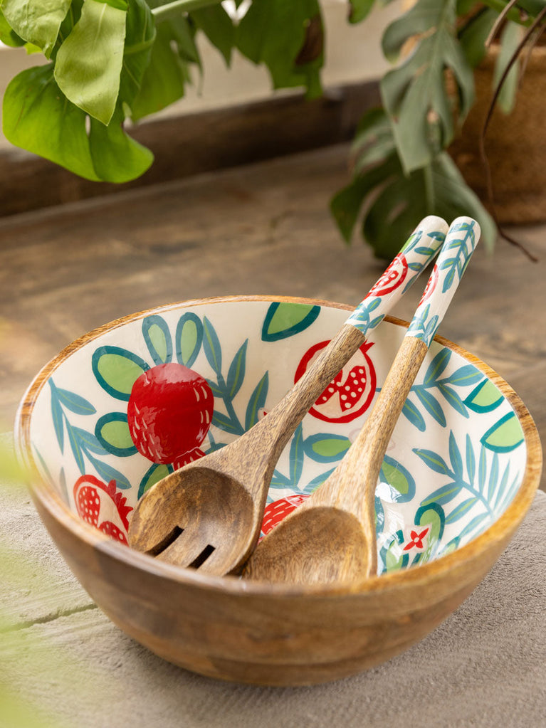 Set of 3 - Nishat Salad Bowl With Serving Spoons
