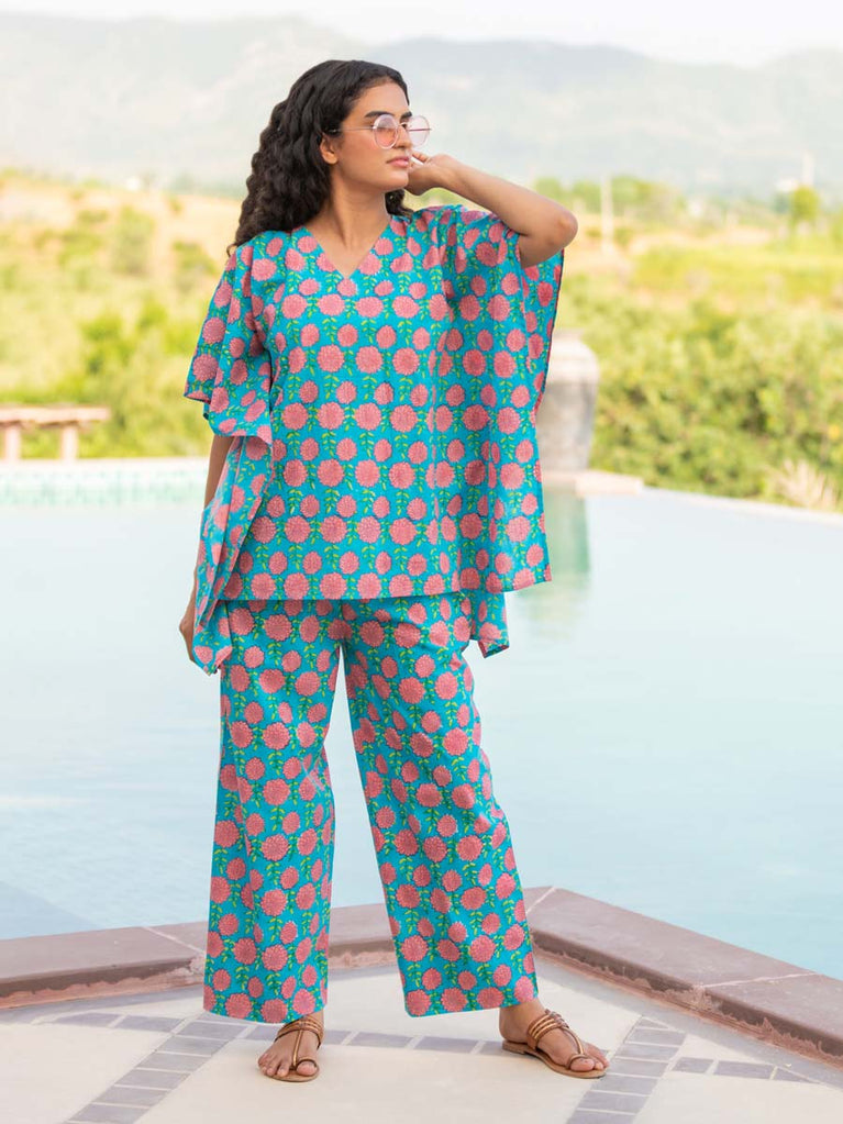 Sweet Dreams Block Printed Cotton Top & Pyjama Set
