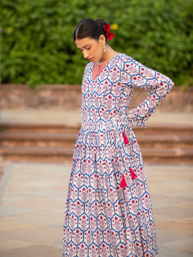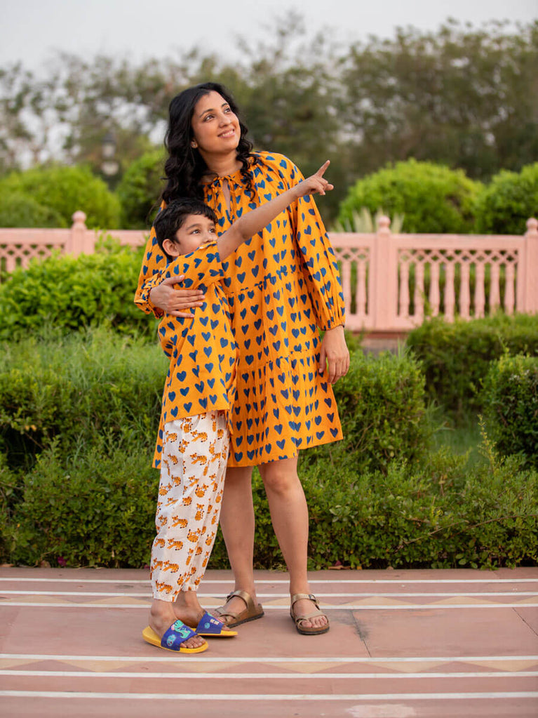 Sweetheart Organic Cotton Block Printed Tiered Dress