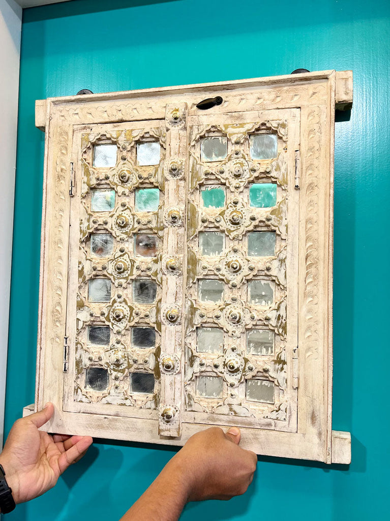 Vintage White Carved Shekhawati Jharokha Wall Decor