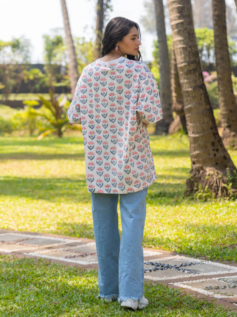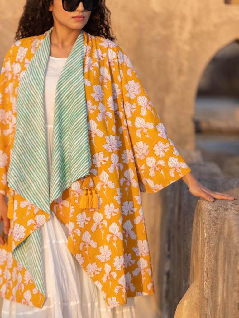 Valley of Flowers Block Printed Waterfall Reversible Shrug