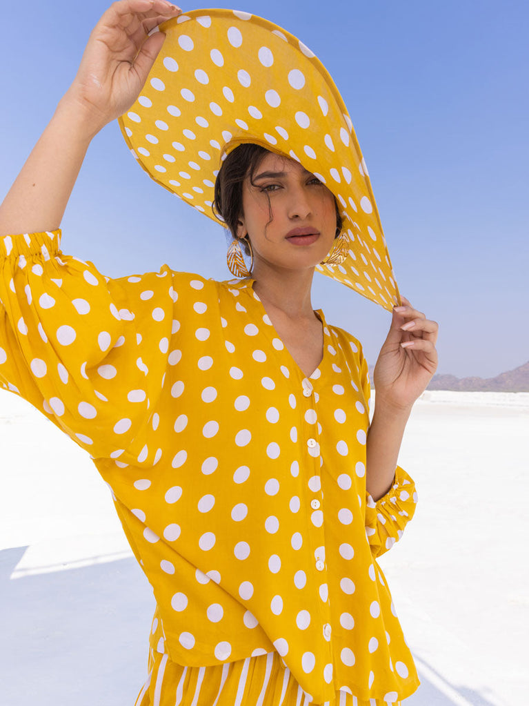 Yellow Umbrella Organic Cotton Block Printed Shirt