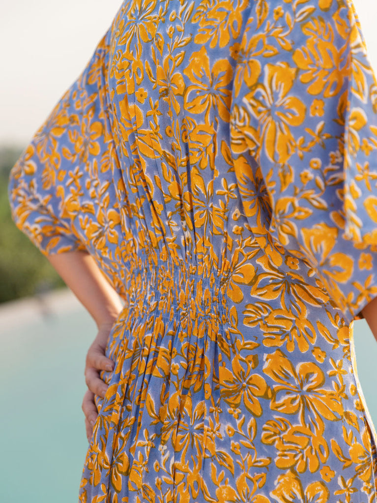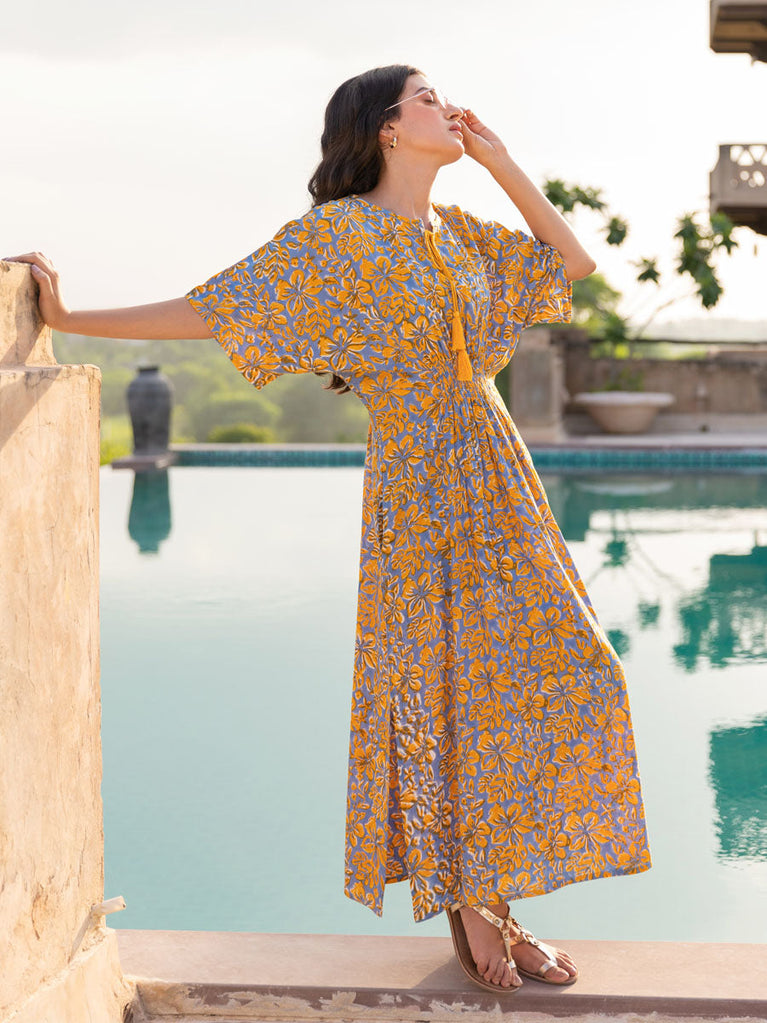Zeniya Waffle Block Printed Cotton Bath Robe