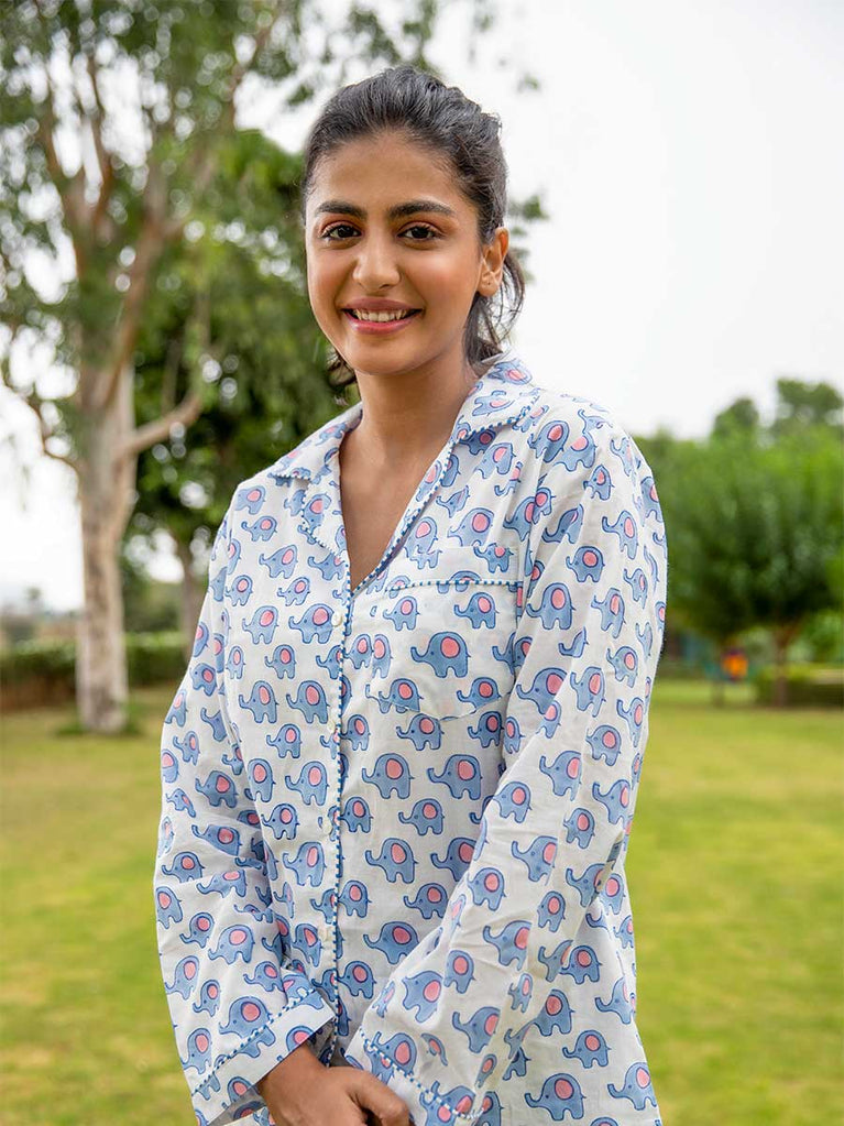 Haathi's March Block Printed Cotton Top & Pyjama Set
