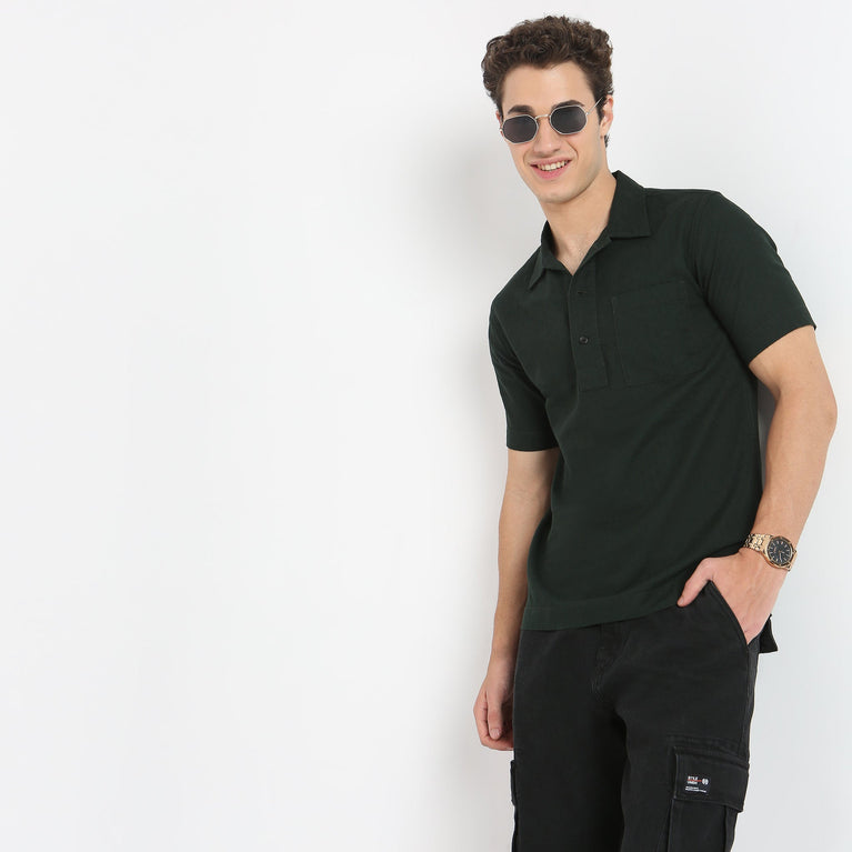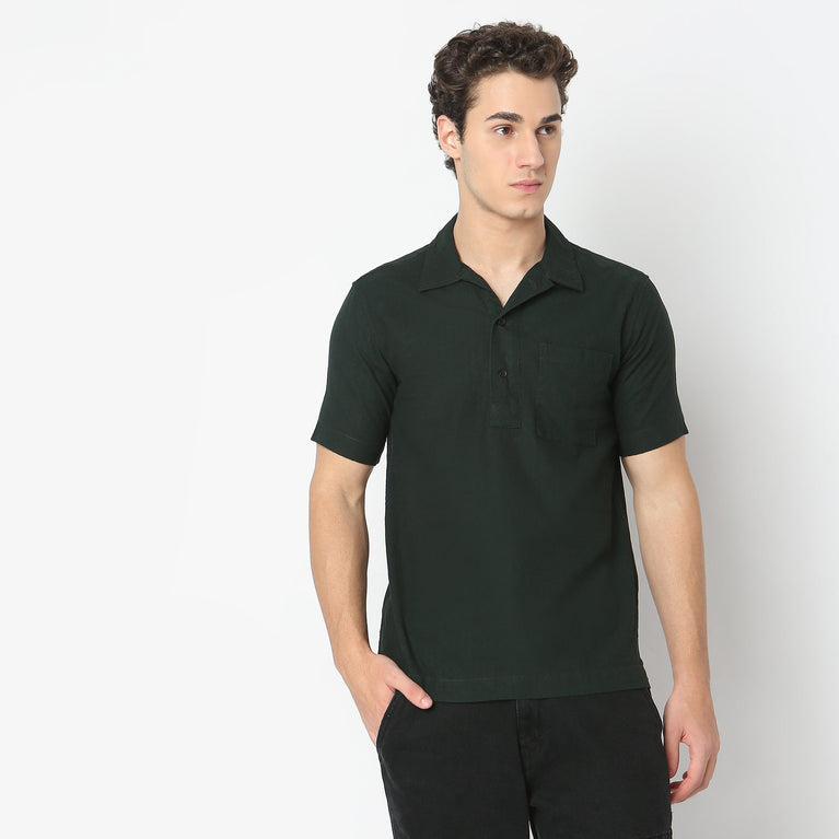 BAE™ Shirt - Camp Collar With Half Placket - Double Tone Fabric - Regular Fit