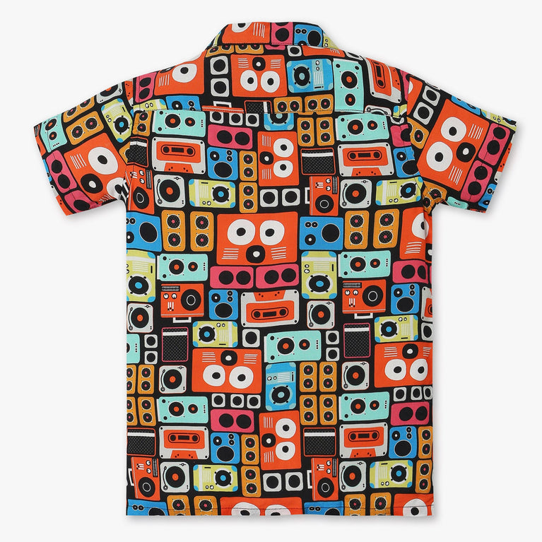 These printed pattern shirt has shirt collar and half sleeve. Made from rayon, your kid's feel comfortable wearing the product.
