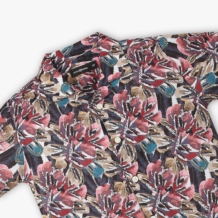 Discover the perfect blend of comfort and style with our Boys Printed Half Sleeve Retreat Shirt. Crafted from 100% viscose, this shirt offers a soft touch and breathable comfort, making it ideal for all-day wear. The vibrant printed pattern adds a playful touch, perfect for any casual outing or family gathering.