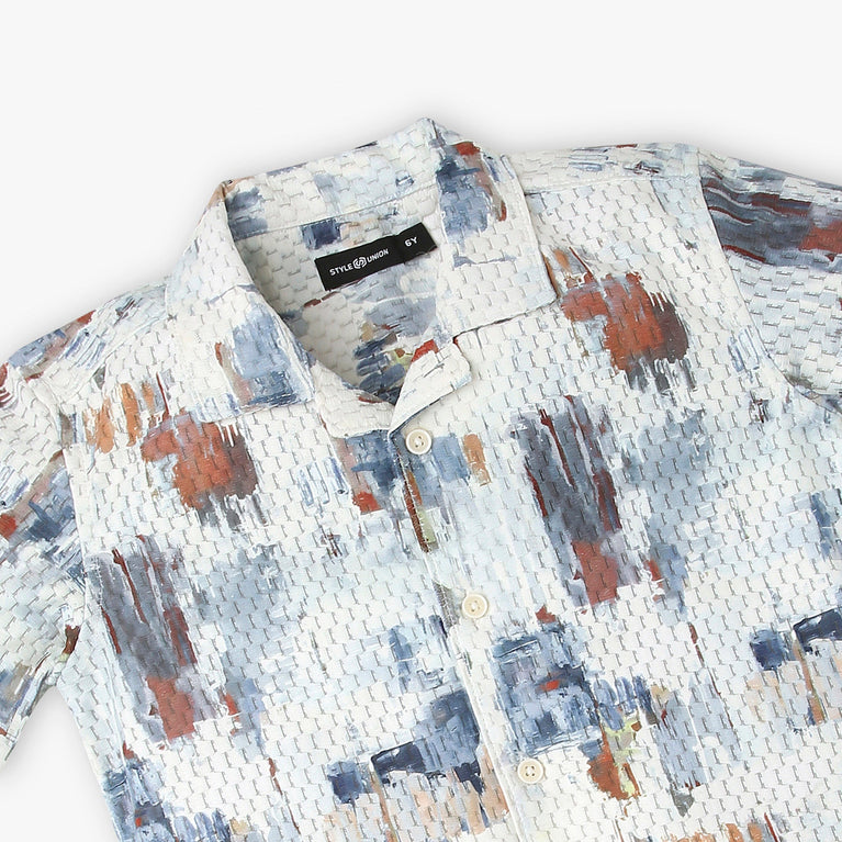 Discover the perfect blend of comfort and style with our Boys Printed Half Sleeve Retreat Shirt. Crafted from 100% viscose, this shirt offers a soft, breathable feel that keeps your little one comfortable all day long. The vibrant printed pattern adds a playful touch, making it a versatile choice for any occasion.