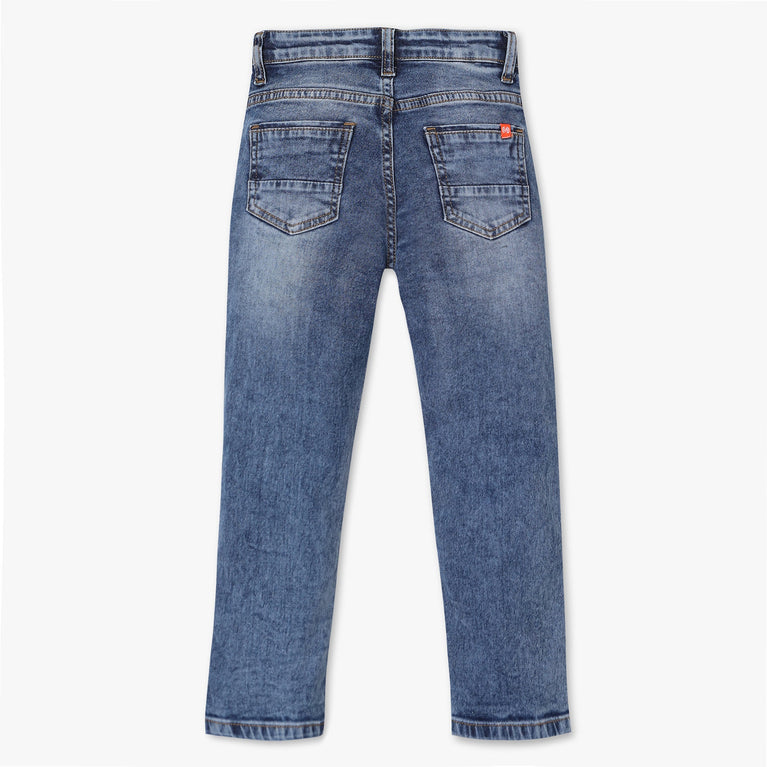 These slim-fit jeans are designed for modern style and comfort, making them a versatile addition to any wardrobe. Crafted from a blend of cotton and spandex, they offer a soft feel and excellent flexibility, ensuring all-day ease. The heavily washed finish and printed design add a trendy, youthful appeal, perfect for casual outings or everyday wear.