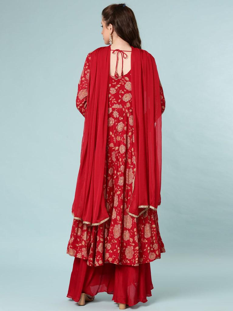 Elevate your ethnic wardrobe with this stunning maroon Georgette Digital Print Anarkali Set. Crafted from lightweight, breathable georgette fabric, this ensemble features intricate digital prints that showcase contemporary artistry. The classic Anarkali silhouette flatters all body types with its graceful, flowing design, making it perfect for festive occasions, celebrations, or cultural events.