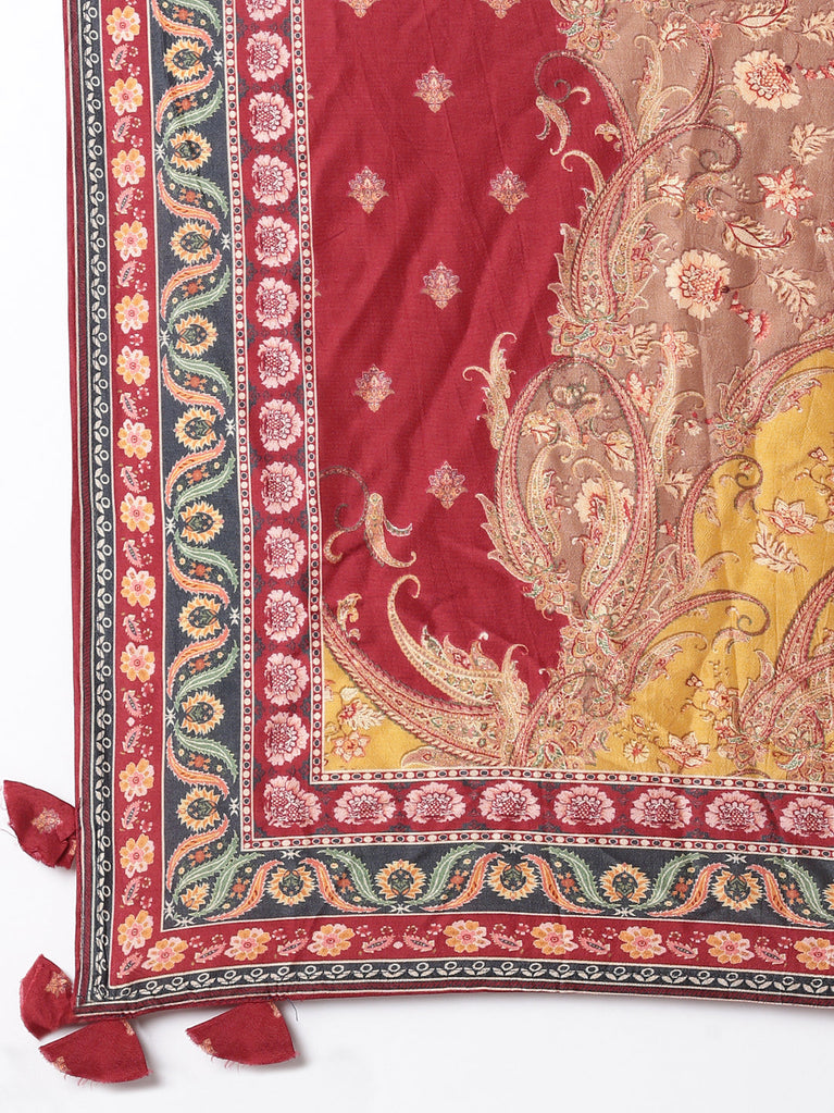 Elevate your wardrobe with this Maroon Muslin Printed Three Piece Set, crafted for comfort and style. The breathable muslin fabric ensures a soft, airy feel, while the intricate print adds a touch of elegance. Perfect for both casual and festive occasions, this set offers versatile styling to keep you looking effortlessly refined.