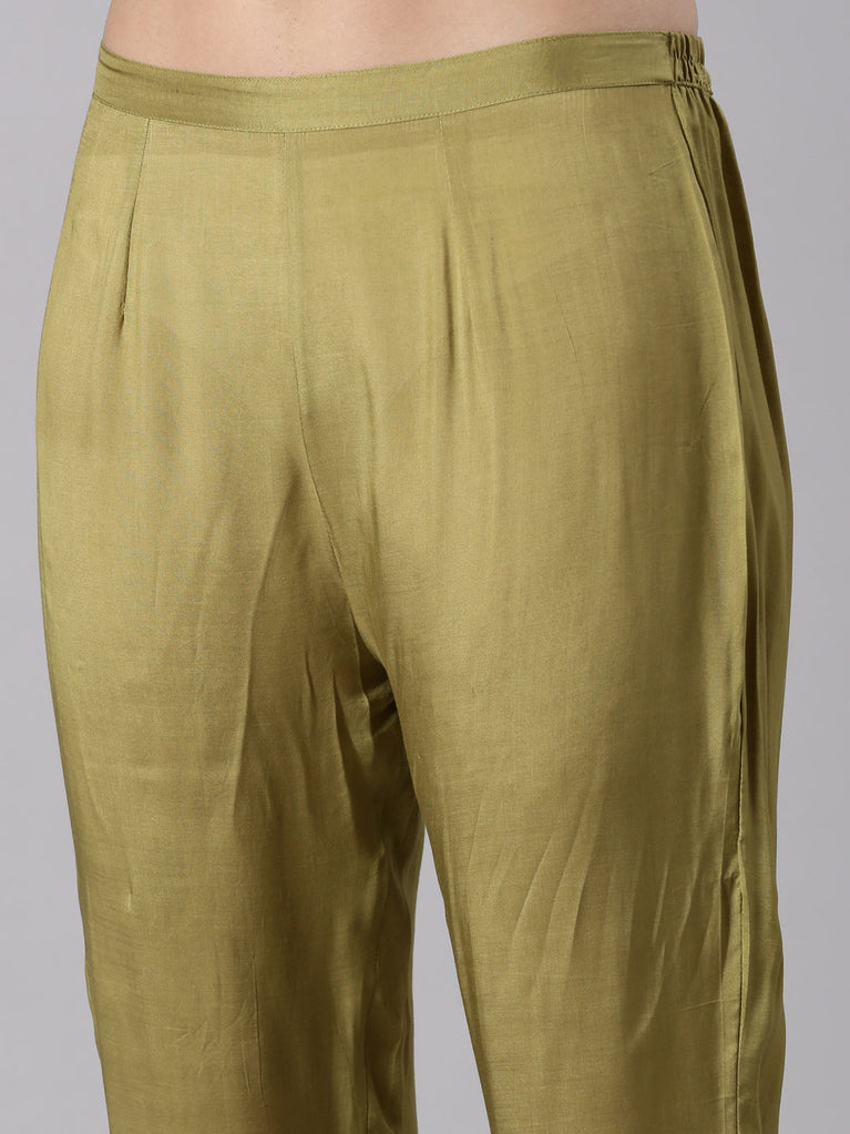 Elevate your ethnic wardrobe with this stunning Mehadi Green Silk Zari Floral Embroidered Three Piece Set. Crafted from luxurious silk fabric, this ensemble features intricate zari and floral embroidery that captures traditional artistry with contemporary elegance. The three-piece design offers versatility for weddings, festivals, and special occasions. Rich mehadi green tones complement all skin tones, while the detailed embroidery work showcases exceptional craftsmanship. Perfect for those seeking authentic Indian fashion that blends heritage with refined style, this set promises to make you stand out with timeless grace and sophistication.