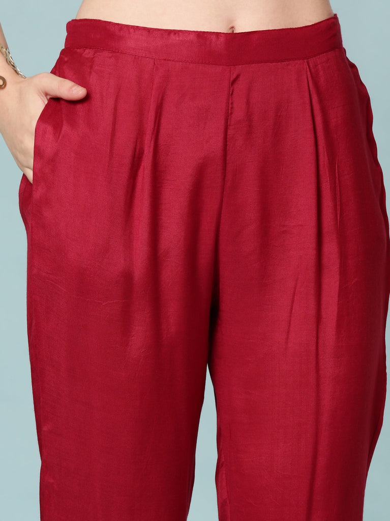 Maroon Viscose Rayon Floral Printed Two Piece Set