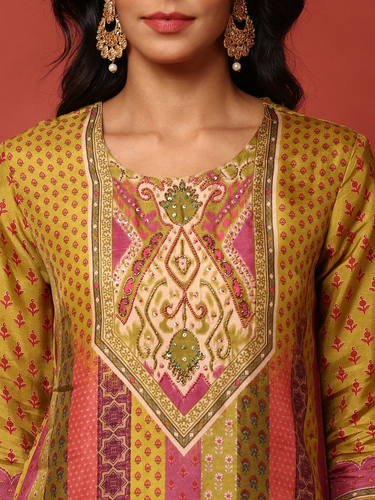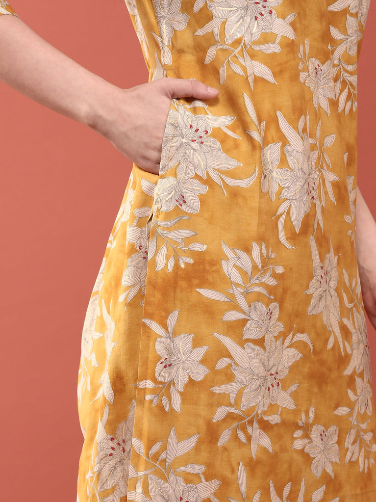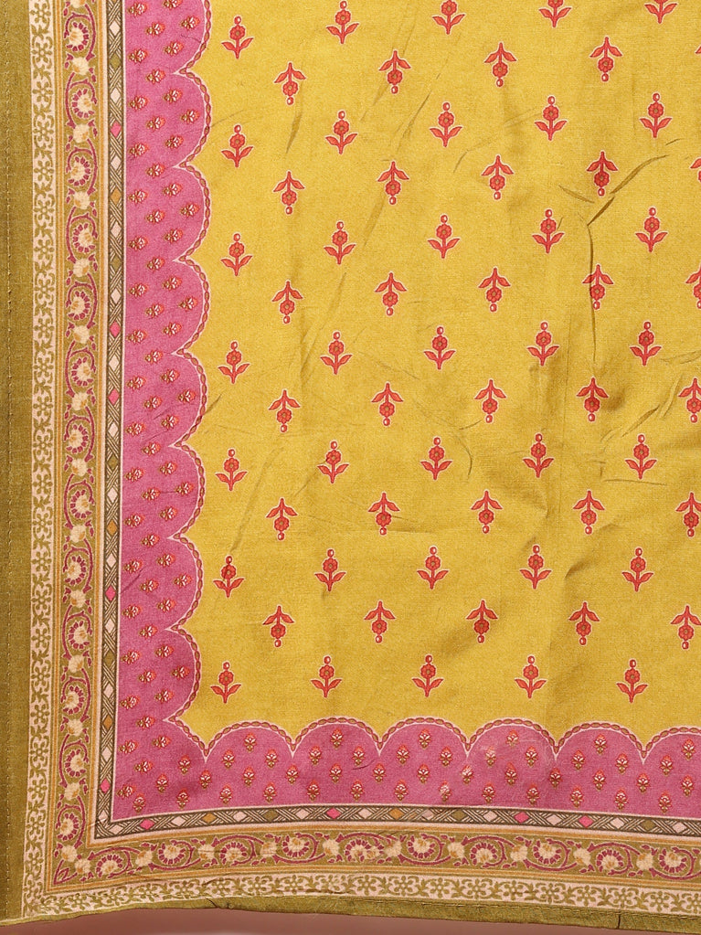 Mustard Chanderi Floral Printed Three Piece Set